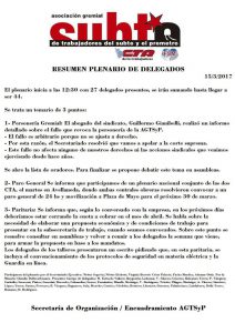 A las 10:45 hs se inicia el plenario, que contó con la presencia de 61 delegados y un temario de...