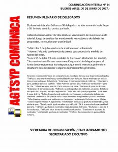 BUENOS AIRES, 11 DE AGOSTO DE 2017.- Informamos a nuestros afiliados que el Plenario de delegados realizado hoy en la...