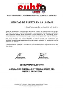 Desde el Secretariado Ejecutivo de la Asociación Gremial de Trabajadores del Subte y Premetro, informamos a la opinión pública, que...