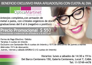 La Secretaría de Acción Social de AGTSyP firmó un convenio con la Óptica Martinet para ofrecer lentes a precio promocional....