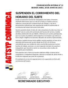 BUENOS AIRES, 23 DE JUNIO DE 2017 Desde la Asociación Gremial de Trabajadores del Subte y Premetro, informamos que en...