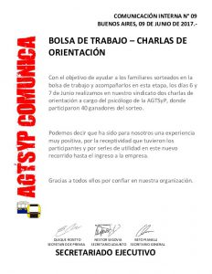 Comunicación Interna #09 BOLSA DE TRABAJO – CHARLAS DE ORIENTACIÓN