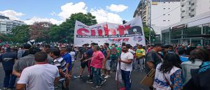 Desde las 11 de la mañana, los trabajadores y trabajadoras del Subte fueron colmando la nutrida columna de la AGTSyP...