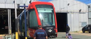 El Alstom Citadis del ex Tranvía de Puerto Madero está deteriorándose a la intemperie en el taller Mariano Acosta del...