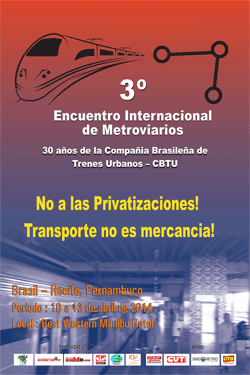 Entre los dias 10 y 13 de abril, se realizara en la ciudad de Recife (Brasil) el 3° Encuentro internacional de Metroviarios, con motivo de celebrarse los 30 años de la Compañia Brasileña de trenes urbanos – CBTU.