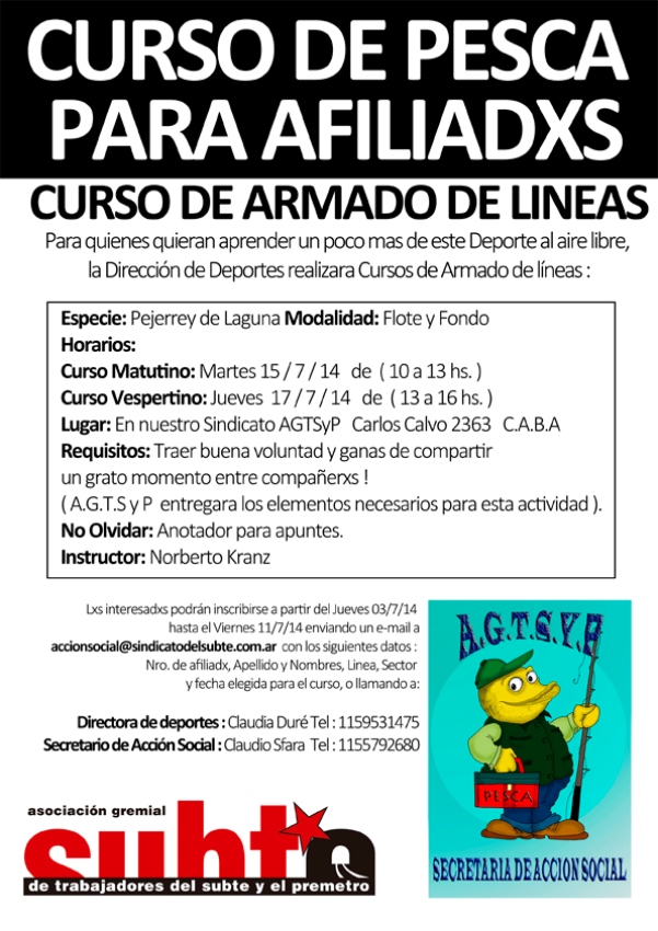 Lxs interesadxs podrán inscribirse pudiendo elegir entre ambas fechas a partir del Jueves 03/7/14 hasta el Viernes 11/7/14 enviando un e-mail a accionsocial@sindicatodelsubte.com.ar aportando los siguientes datos: