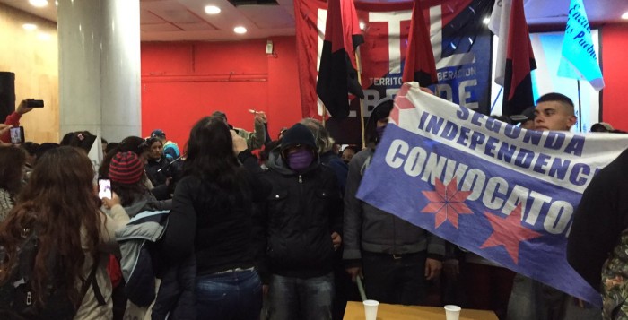 Se trató de un grupo de entre 100 y 150 personas, integrantes de las agrupaciones “Encuentro de los Pueblos” y MTL (Movimiento Territorial de Liberación), organización que responde a Carlos Chile, ex sindicalista de la CTA porteña ligado al sector de esa central obrera que conduce Pablo Micheli.