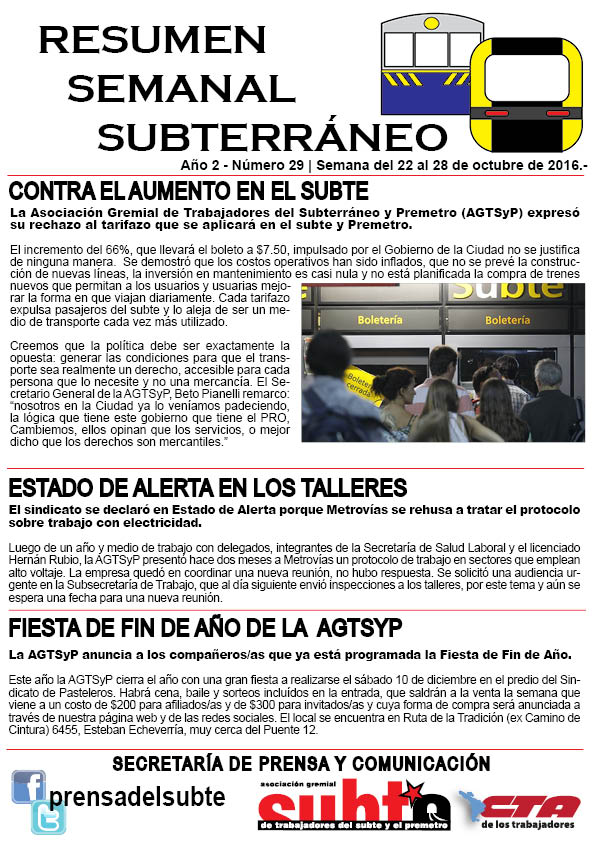 Secretaria de Prensa y Comunicación Año 2 – Número 29 andreas 31 octubre, 2016 Año 2 – Número 29 | Semana del 22 al 28 de octubre de 2016.- Continue Reading Previous Año 2 – Número 28Next Año 2 – Número 30 More Stories Secretaria de Prensa y Comunicación Encuentro de comunicación sindical organizado por la Fundación Germán Abdala y la Facultad de Ciencias Sociales andreas 5 diciembre, 2019 Secretaria de Prensa y Comunicación Asunción del Secretariado Ejecutivo periodo 2019-2023 andreas 27 marzo, 2019 Secretaria de Prensa y Comunicación Programa especial “Libertad a los Presos/as Políticos” andreas 29 diciembre, 2017