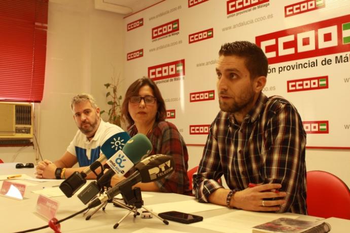 La secretaria general de la Federación de Servicios a la Ciudadanía (FSC) de CCOO de Málaga, Carolina Ortiz, junto al presidente del comité de empresa del metro de Málaga, Juan Vicente Pomares, y el delegado de la sección sindical de CCOO, Román Galea, han comentado que tras “varios intentos de negociación” este año con la empresa y con la Junta de Andalucía para tratar de reabrir la negociación y equiparar las condiciones laborales con la de otros metros “la situación sigue siendo la misma”.