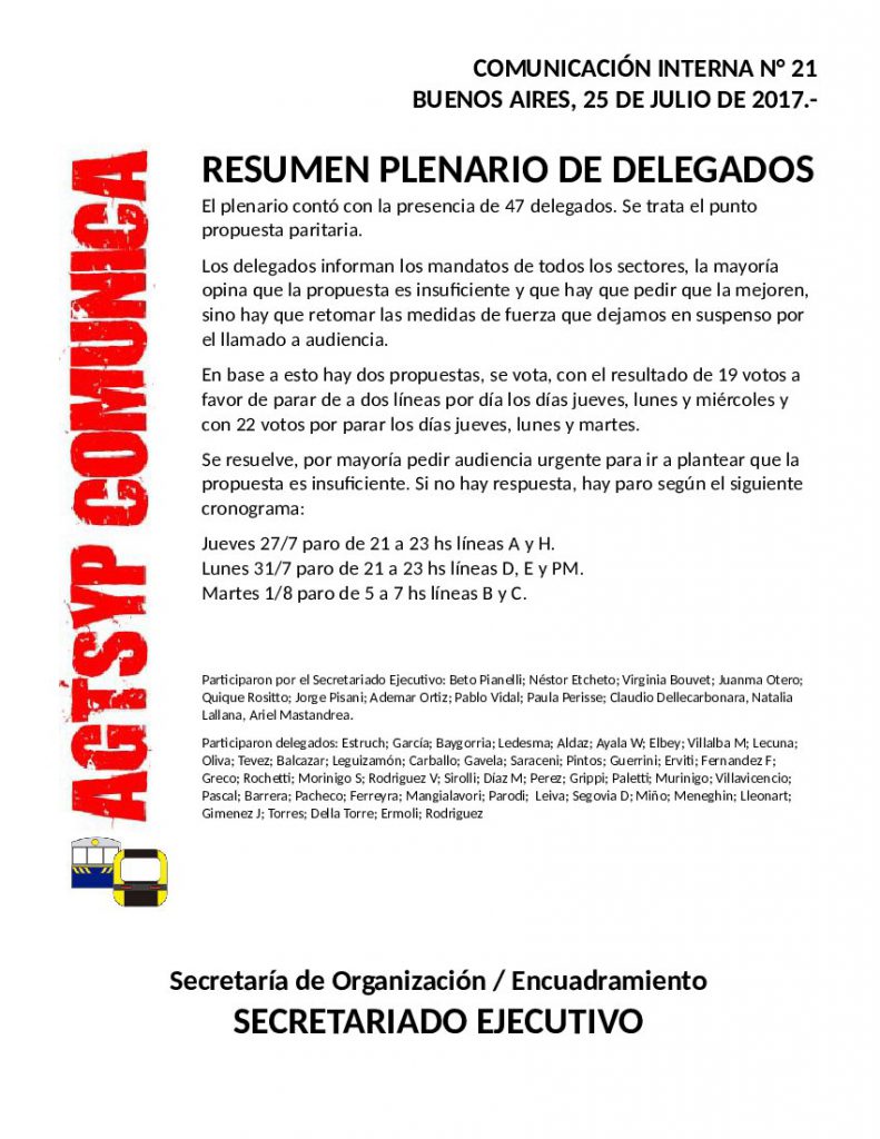Comunicación Interna #21 RESUMEN PLENARIO DE DELEGADOS