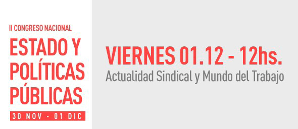 Este viernes 01/12 a las 12 del mediodía se realizará la parte Actualidad Sindical y Mundo del Trabajo del II Congreso Nacional Estado y Políticas Públicas, organizado por FLACSO y el Centro Cultural de la Cooperación.