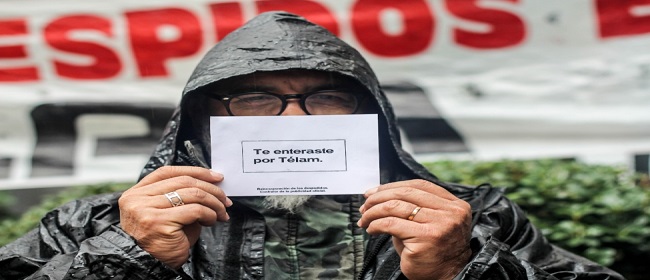 La Comisión Gremial Interna de Telam realizó un acto en la tarde de ayer en la puerta de la agencia, Bolívar 531, para reclamar la reincorporación de Fernanda Arce y Ángel Jozami, despedidos la semana anterior. Por este hecho, la CGI en asamblea dictó un paro por tiempo indeterminado. El evento contó con la presencia y apoyo de diversas organizaciones políticas, gremiales y sociales. Integrantes del Secretariado Ejecutivo de la AGTSyP estuvieron presentes.