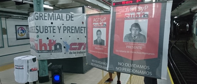 Como todos los años, la AGTSyP realizó el acto en memoria de los compañeros detenidos desaparecidos del Subte, y en ellos a lxs 30 mil, en la estación Plaza de Mayo.
