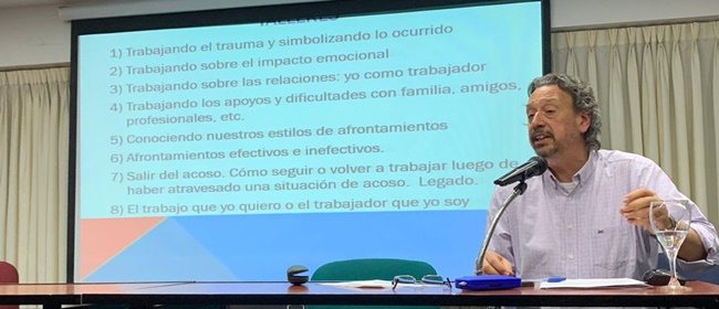 En esta oportunidad, y en el marco del ciclo de formación 2019 la jornada trató sobre el Impacto de la Violencia Laboral en la salud de los trabajadores, su diagnóstico, tratamiento y abordaje institucional.