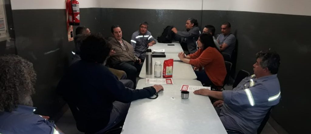 Nos acompañó en esta oportunidad el ingeniero Carlos Vacca, especialista en higiene y seguridad y colaborador de la Secretaría de Salud Laboral del sindicato, quien conversó con los trabajadores sobre medidas de seguridad a tener en cuenta en sus puestos de trabajo. De la charla participaron también compañeros del almacen, que centralizan la ropa y los insumos de todo GIF.