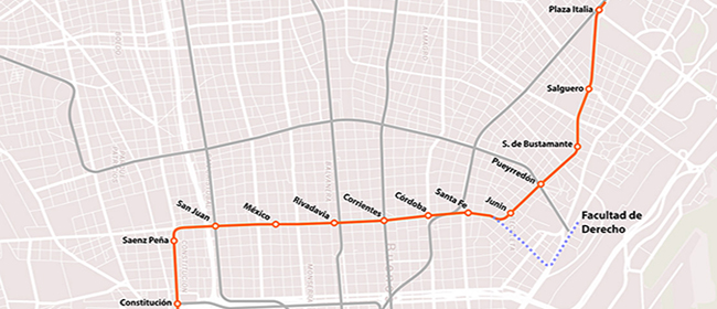 La misma, que según explicaron desde SBASE, todavía no tiene fecha de inicio ya que aún no hay financiación para su desarrollo, contará con 13 estaciones en un trazo total de 12 kilómetros. Las paradas serán California, Suárez, Constitución (combinación con la línea C), Entre Ríos (combinación con la línea E), Independencia, Congreso (combinación con la línea A), Corrientes (combinación con la línea B), Córdoba (combinación con la línea E), Las Heras (combinación con la línea H), Hospital Rivadavia, Salguero, Plaza Italia y Palermo (ambas con combinación con la línea D).